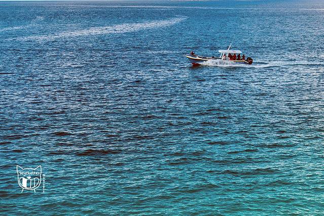 跳岛游的小艇从这片海域划过,之后又只剩下海浪声。