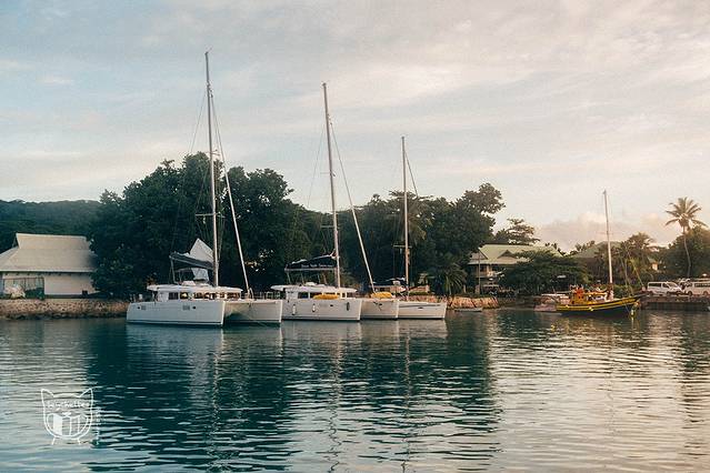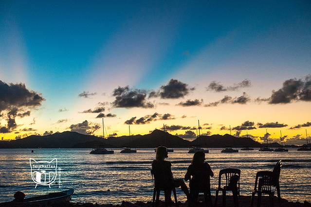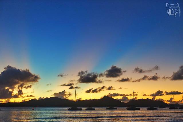 这会儿已经是临近落日了,窗外的港口都是回家的渔船,告别了昨天雨季的最后一场大雨,马埃岛的天气超好。(想到昨天暴雨中逃难一样的圣安妮海洋公园之旅,差点哭出声来)