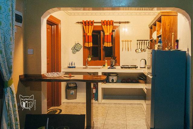 公寓坐落在马埃岛的半山腰上,房间宽敞,干净舒适,所有生活用品一应俱全,推开落地窗,可以俯瞰维多利亚的风景,门口就是公交站,去哪里都方便,厨房设备齐全,终于可以摆脱“西餐”的梦靥了。