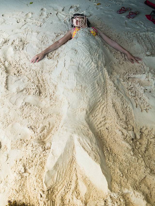 沙滩上沙子细细软软,粘性特别好,于是顺手揉了个沙人儿……