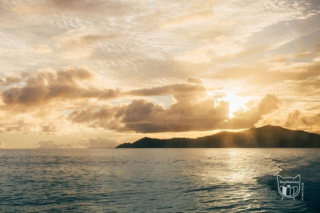 从马埃岛到拉迪格大概1个半小时的行程,一路上的风景每一眼都不一样,伴着太阳一点点沉向海底。
