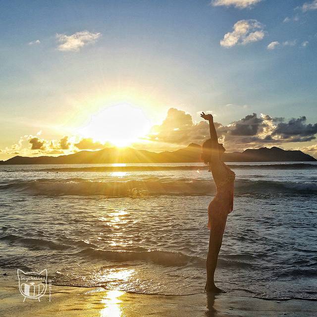 在大海湾疯玩到太阳下班,赶紧收拾好东西往回走,要感受拉迪格最梦幻的落日,一定要去Anse Reunion(留尼旺海湾)。