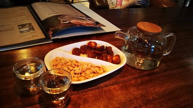 吃完同得兴,我们的肚子再也塞不下任何东西了,离晚餐还有很长的一段时间,我们就商议去诚品逛逛,滴滴25元到诚品。逛了一圈,啥也没买,决定找家coffee bar坐坐,大众搜了一圈,决定去苏州文博中心旁边的 istation的Hana to Alice Coffee & Cocktails。微信点了咖啡和玫瑰花茶(有折扣),四姐妹各种葛优躺,顺便商议下一站去哪里。最后决定下一站留给点心。