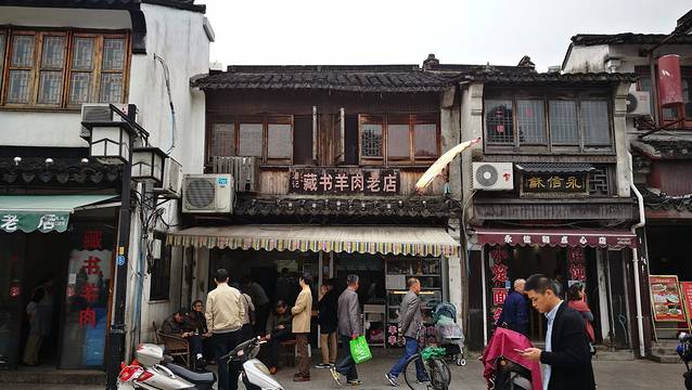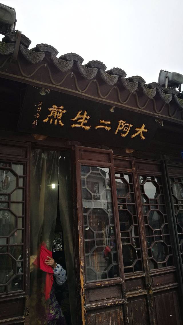 原本打算再去吃闻其香臭豆腐的,但大门紧闭,好不容易里面出来一位阿姨,一问,要10:30左右才开业,不想继续等下去,就放弃了。从山塘街右转到阊胥路,没走几步,看到大阿二生煎,斜对面又有潘记藏书羊肉,这些店都曾出现在美食攻略里,但实在塞不下东西了,依然放弃品尝,等待下次有机会再试。