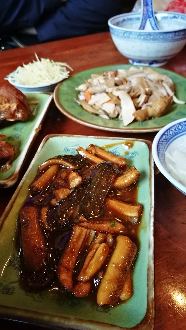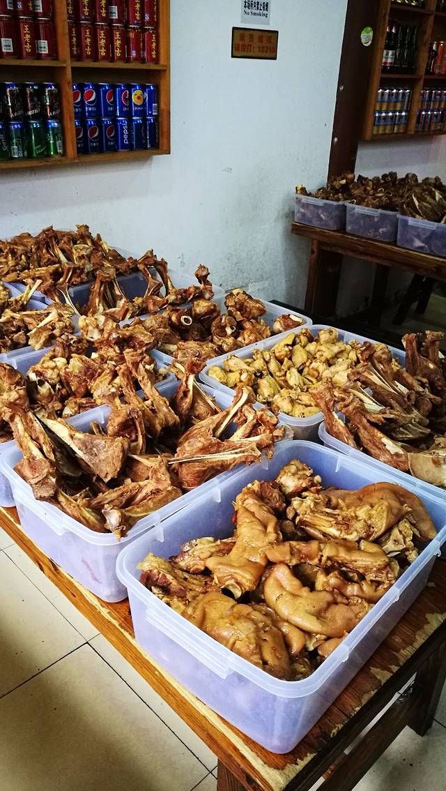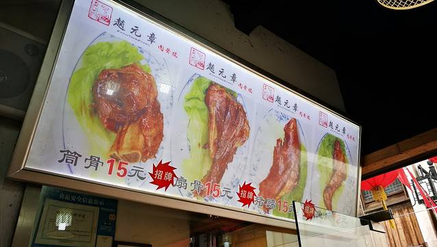 我们的第二站:赵元章肉骨烧。要了一份扇骨,15元。先是把扇骨放油里炸一下,然后再放锅里小火裹一层酱汁,算是浓油酱赤了。看着图片很诱人,但实际尝了之后略感失望。首先,酱汁偏咸,咸甜比例明显没调好,而且这个咸和东北酱大骨的咸还不太一样,其次,肉不太好,略有一点猪腥气,原本应该会被它浓厚的酱汁掩盖掉,但就是被我们尝出来了。然后,因为油炸过,肉显得很干硬,有点咬不动。好在,我们4个人只要了一份扇骨,浅尝即止,不推荐啊!