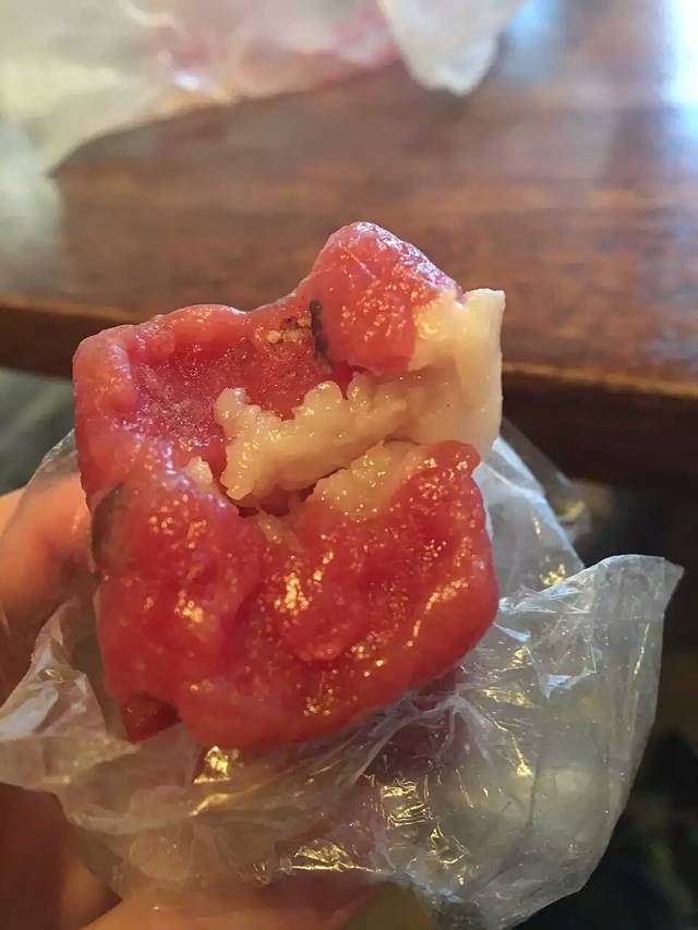 表妹还买了块猪油糕,原本想着猪油膏应该是那种熬出来的猪油和面团混在一起做的糕团,实际却是整整一块猪油(肥肉)塞在糕团里。据说热的时候吃非常美味,但表妹吃的时候已经冷却,一口咬下去,一口固态猪油,想象一下那个口感和味道,反正表妹是立马吐出来的。