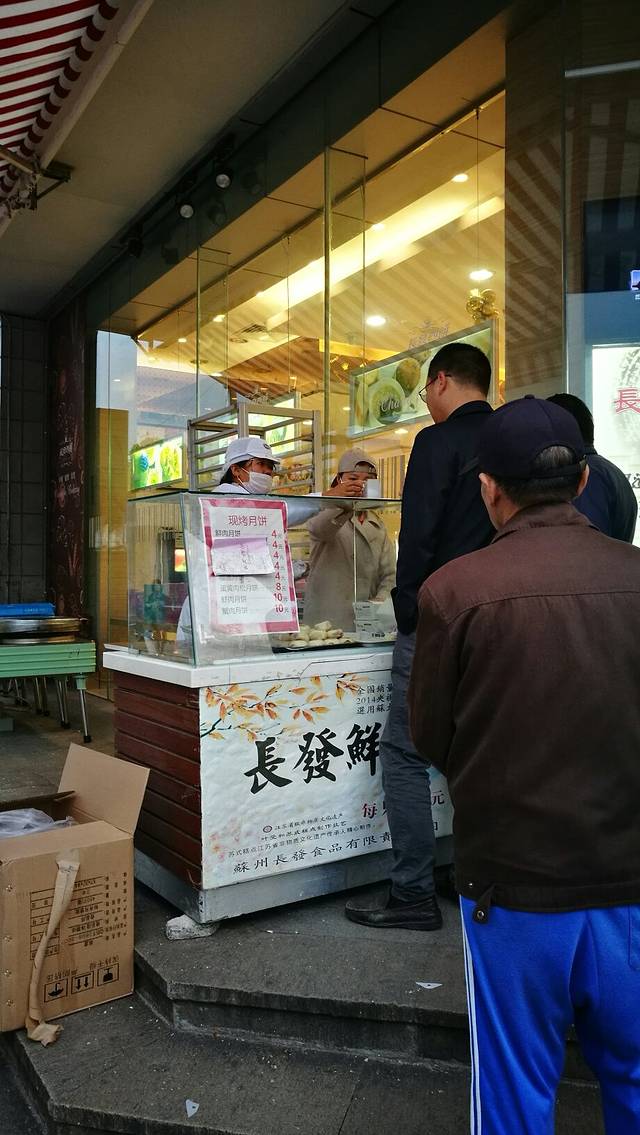 休息完毕,坐1号线到临顿路站下,然后朝着我们第六站进发:长发西饼和好利来。长发西饼就在长发大厦一楼,卖鲜肉月饼的不在店内,而是在外面走廊上,当我们找到时,已经有很多人在排队了。鲜肉月饼4元一个,虾肉和蟹肉10元一个,买10个送2个。人虽然多,但速度还算快,月饼也是3个炉子一起烤,所以大概等了15分钟就轮到我们了,但蟹肉的没有了。我们买了20个鲜肉,3个虾肉,还送了4个鲜肉,一共110元。长发的鲜肉月饼和上海的鲜肉月饼完全不一样,长发的鲜肉月饼饼皮更加松软而且薄,典型的苏式月饼饼皮,没有上海的鲜肉月饼饼皮那么油腻,干硬,肉馅很大一块,味道偏咸甜,非常好吃。下次有机会还要去试试胥城的鲜肉月饼。买好月饼,立马就去了旁边的好利来,直接人手拿了一盒半熟芝士,大盒5粒38元,小盒2粒16.80元,一口咬下去,满口的软醇香腻的芝士,后悔买少了。妹妹们还拿了榴莲木糠杯,据说也很好吃。