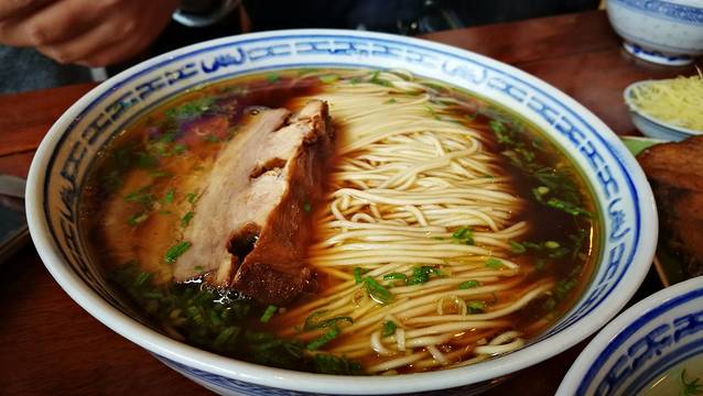 几个人买好糕团,整个包包沉甸甸的,继续前往十全街的同得兴。在书院巷人民路交界口附近,有家叫“琼林阁”的面店生意爆好,里面坐满了吃面的人,门口还有个阿婆在卖白兰花,但是阿婆的手里也捧了一碗面,虽然没啥浇头,仅仅是红汤光面,但看上去就是很好吃的样子。无奈我们要按原计划去尝试同得兴以及裕兴记,毅然放弃。事后,混迹苏州多年的老同学发来消息说:你们真的应该试试琼林阁的面!