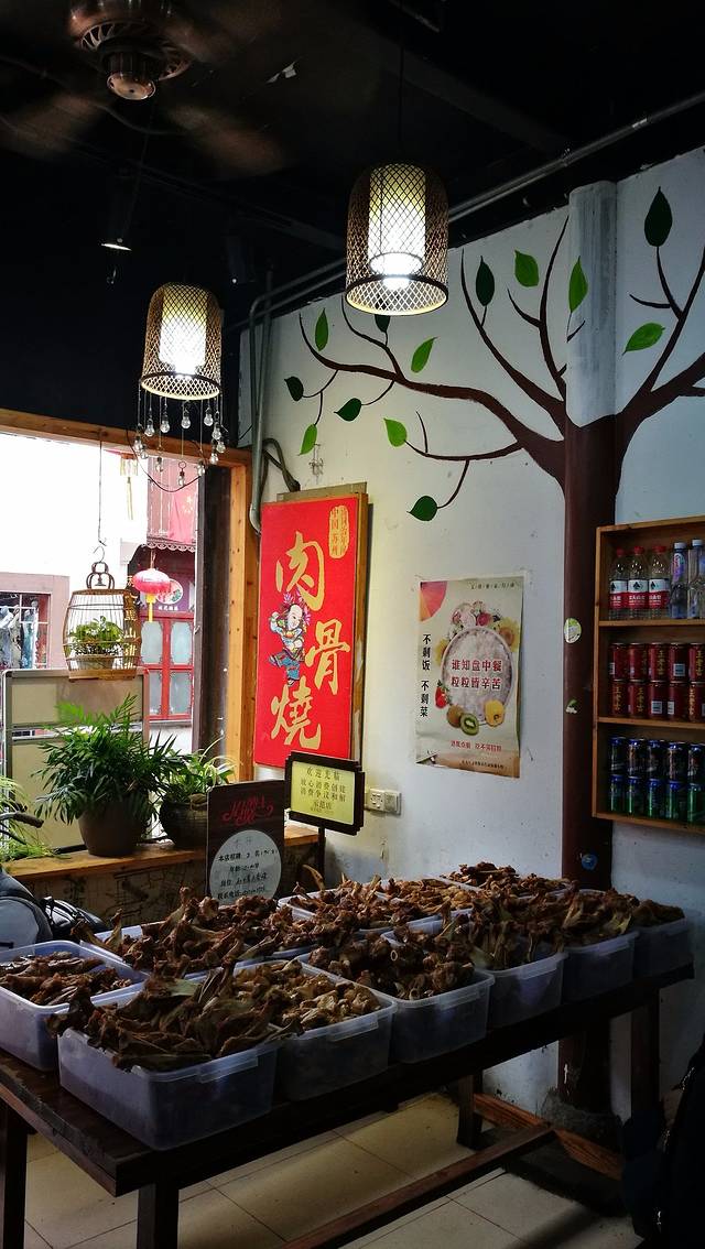 吃完荣阳楼,我们往山塘街的另一头进发,那里有闻其香臭豆腐、赵元章肉骨烧、大阿二生煎以及潘记藏书羊肉。这一段的山塘街明显的商业氛围很浓,游客颇多。