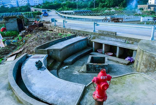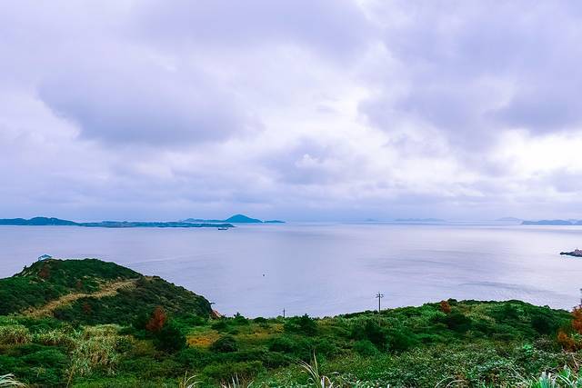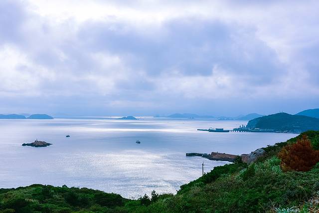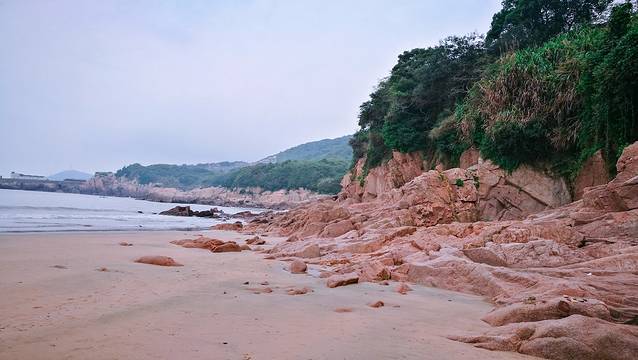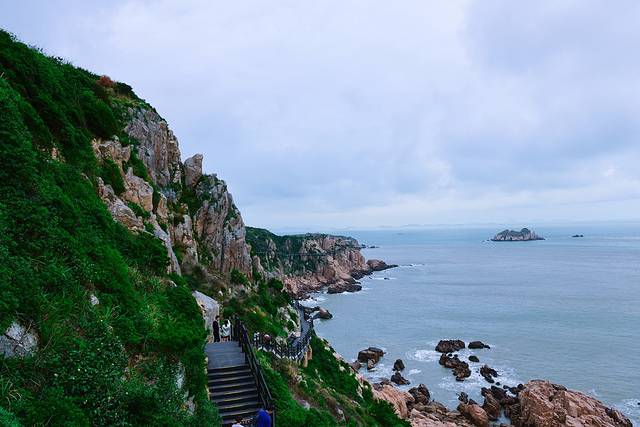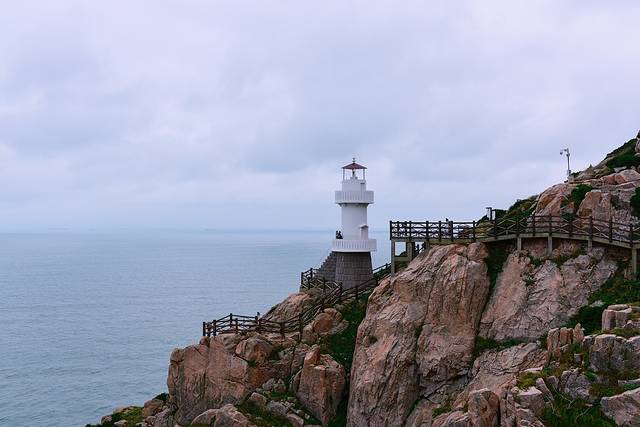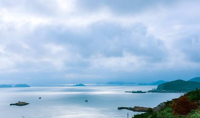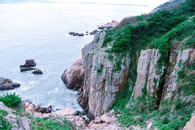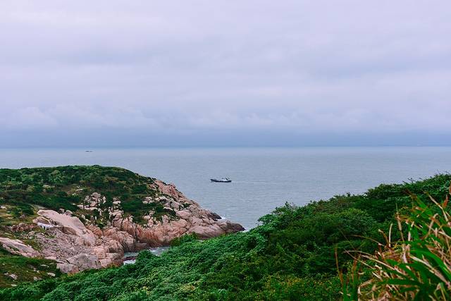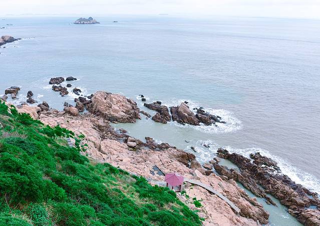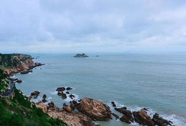 到了六井潭,天色已略暗,门口检票的工作人员说,最晚17:45要出来了。好吧,加快步伐,赶紧往里跑。路上碰到里面工作的一位阿婆,信手一指说:“那边可以看到枸杞岛和花鸟岛,因为此地是嵊泗的最东边。”由于天色较暗,我们努力张望,果然隐隐约约看到一片岛影,无奈实在分不清哪是花鸟,哪是枸杞。
