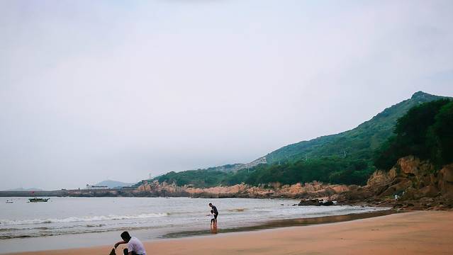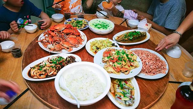 虽说是普通客轮,但觉得速度也挺快的,一小时左右就到了嵊泗的泗礁码头。下了船,走到停车场,全是出租车、黑车候着,所以不用担心下了船没有车。由于订的套餐含接送,我们就原地等待,不一会儿,一辆面包车来了。我们上了车,一路狂驶,来到基湖村。套餐中含的住宿位于基湖村比较偏僻的地方,说好听点就是幽静,说难听点就是荒僻,好在老板娘还不错。房间设施什么的就不要要求太高,反正我们家都自备。放下行李,大家略微修整,打算去基湖沙滩逛逛。走过去大概15分钟,也可以坐公交车,k003路,大概3-4站路。整个基湖沙滩外围被围的严严实实,进去必须买票,白天60元/人,晚上20元/人。感觉好不值得,所以我们就在门口的广场上逛了一圈,正好感到肚子饿了,大家决定先晚餐。