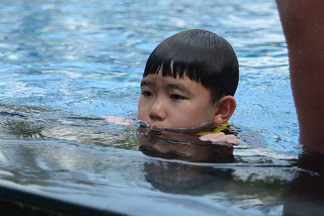 今天要换酒店了,没有安排活动,所以凡童鞋起床吃好早饭后就跳进泳池游泳了,同时和小葡萄来了一场游泳比赛。