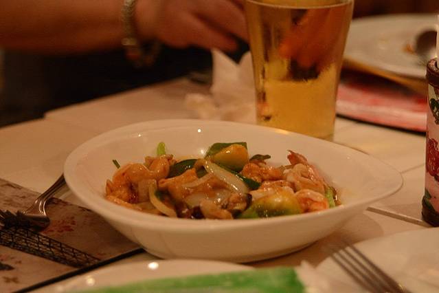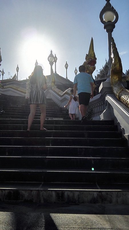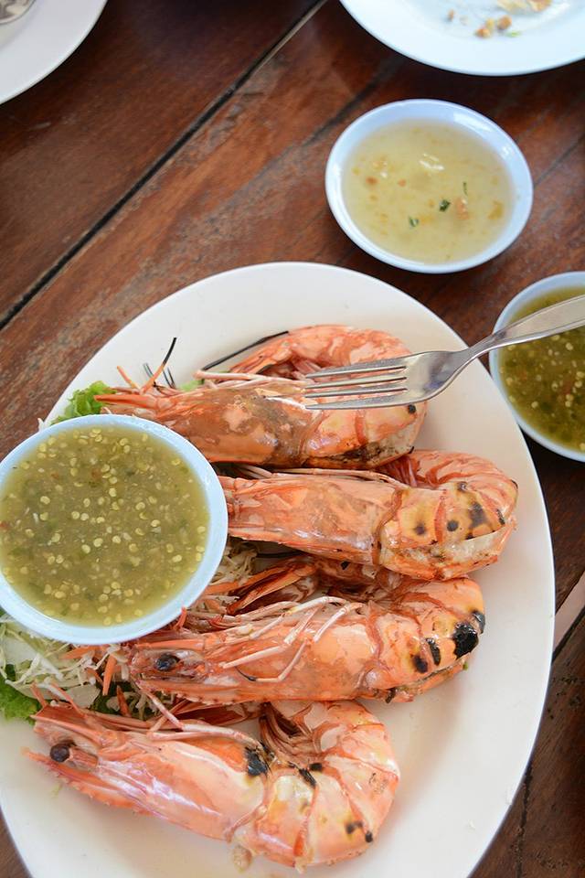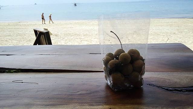 参观完白庙,还未到17:30,但看到夜市的摊位已经都慢慢摆出来了,所以我们6人和另外一家伙伴又分道了,各管各的活动。一路走进夜市,外面是买小商品的,里面一圈是买吃的,当中有个舞台,舞台前有一小片空地摆着桌椅供游客使用。由于我们到的早,桌椅还空很多,委派凡爸带着2娃先抢占位置,凡妈和小葡萄爸妈去买吃的。买了一圈,还是发现有个猪肉串挺好吃的,凡童鞋吃了5串啊!夜市的价格相对奥南的来说还是便宜的,椰汁冰激凌35b,猪肉串20b,一条很大的海鱼160b,生蚝40b一个,鸡翅35b一个,鸡胗串30b一串,买了一袋龙眼40b,还买了一个芒果,40b,但不甜。莲雾多少钱忘记了,但也不贵,其他的好多价格都忘记了。这时天色渐暗,人也越来越多,广场的座位早已坐满,另外一伙分散的伙伴也因此找不到座位,而去了甲米河旁的一家小店吃饭。最后和凡爸一人一杯mojito和long beach结束夜市之行。