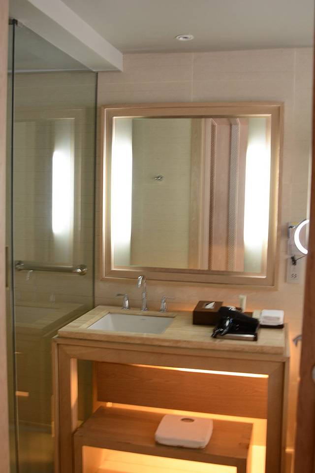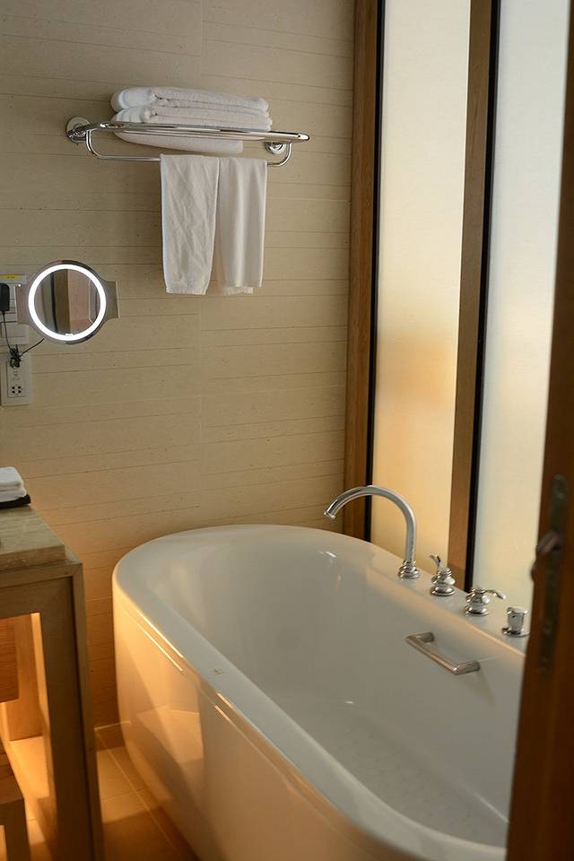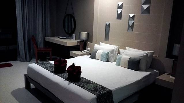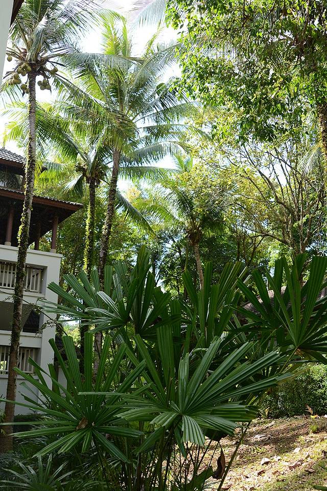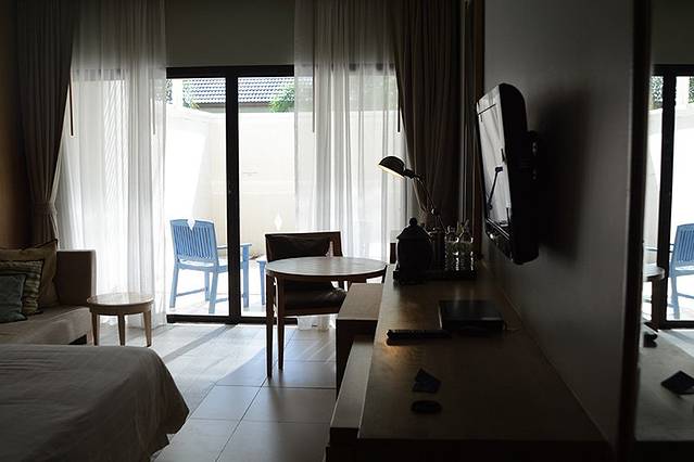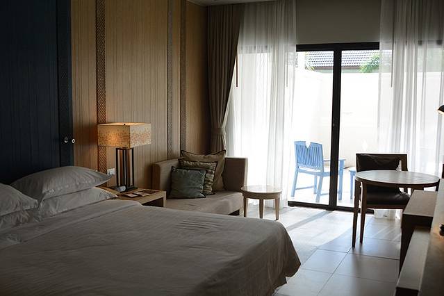 当车子开进Dusit Thani Krabi Beach Resort的大门时,凡妈就感觉到这次选对了地方了!一进大堂,瞬间勾起当初走进沙巴的香格里拉拉萨莉亚的感觉:面朝大海,春暖花开!心情一下子舒畅起来。前台mm很热情的帮我们办理了入住手续,并且告知我们其他几家的房间号,同时奉上了冰毛巾和甜甜的冰冰的姜茶,最后拿出酒店地图,一一帮我们注明酒店的设施分布。办理好入住手续,由于我们的房间就在大堂旁边一幢,所以不用坐电瓶车,直接走过去即可。前台mm带着我们走到房间,并为我们一一解说了房间的设施,并且告诉我们三楼楼梯口有制冰机,可以免费装冰块。另外还询问我们3个人是否睡的下一张床,凡妈表示,king size的大床足够我们仨睡了。给了前台mm和送行李的服务员各20b的小费,凡妈开始打量这个房间。我们的房间在一楼,有个很大的院子,虽然看不到外面的风景,但是很私密,而且由于特殊设计,楼上的人也看不见我们院子的情况,这点凡爸是相当喜欢的,因为他总是不太喜欢住一楼,觉得私密性不够。房间没有之前的LA PLAYA大,但更温馨,设施也很新,网速很ok,我们带去的小米小盒子看国内电视完全没问题。水温也很稳定,以至于凡童鞋推翻了之前他不喜欢泰国的理由之一:水温不稳定。