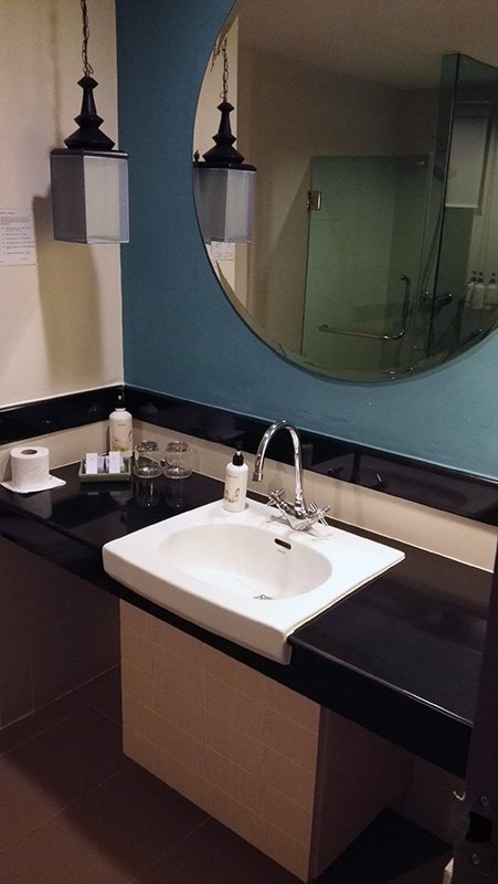 大约30分钟后,就到了酒店。酒店在一条小弄堂里,反而倒显得很安静。弄堂口就是一个警局、一个较大的旅游代理点、还有一个7-ELEVEN、旁边还有一串的MASSAGE店。给了司机20B的小费,结果大堂竟然没服务员,等了一小会,终于来人,还是个不太会说英语的值班人员。经过凡爸的努力沟通,终于办理好了入住手续。房间在5楼,没有服务员搬行李,所以只能自己搬,省了一笔小费了。打开门,房间还挺大的,床上有折叠好的毛巾小象,还有一个木床榻。缺点就是水温不够稳定,一会热一会冷。放好行李,一行人决定外出觅食。结果太晚了,全部打烊了,只能冲到7-ELEVEN买了一些吃的零食,以及泡面,凡妈选了一个蒸饺,超级好吃。第一天就这么过去了。