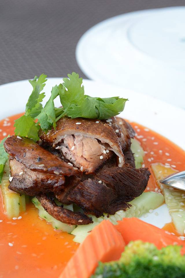 临近中午,凡妈和凡爸决定带着凡在奥南吃最后一顿午餐后再去另一个酒店,另外8人决定中饭不吃了,直接叫车去Dusit Thani Krabi Beach Resort。他们让酒店前台叫了一辆mini van,800b到Dusit Thani。而凡妈拉着凡爸和凡,找了一辆3轮车,100b,直接杀到BOAT NOODLE吃午餐。