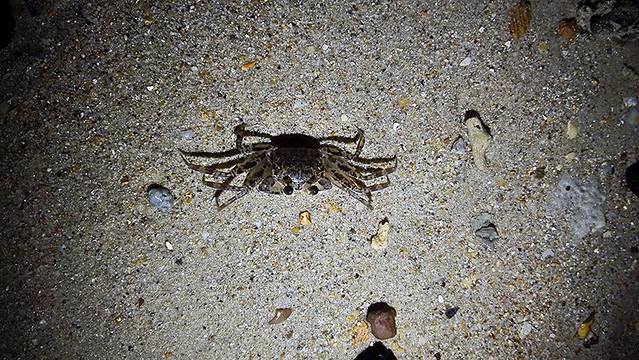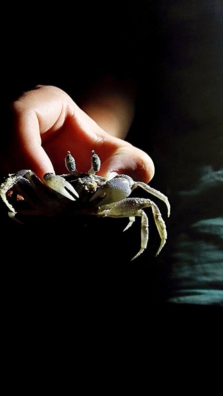 吃完,带着凡去沙滩抓螃蟹了!不过Dusit Thani竟然没有手电筒,只能靠着手机的手电筒功能去抓螃蟹。沙滩上螃蟹还挺多的,凡抓的不亦乐乎!