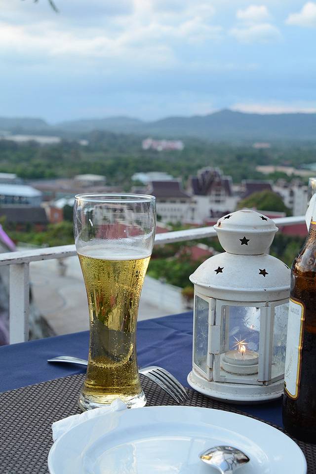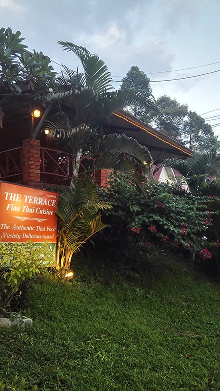 晚饭是在酒店对面的The Terrace吃的,我们去的时候一个客人也没有,服务员爱理不理的,冷冷淡淡,反倒是针对后面来的几个老外,显得相当热情。餐巾是直接扔在凡妈腿上的,注意是扔,不是放哦!菜价还是挺贵的,shake是除了在THE HILLTOP吃的外最贵的,120b一杯,不过餐厅布置的挺不错。一顿饭3个人吃掉1460b,也没点几个菜啊。凡爸给了1500b,零头直接当了小费。凡妈说:服务那么差,还给小费。凡爸答复:让他们知道我们中国人也是很大方的,不比老外差!