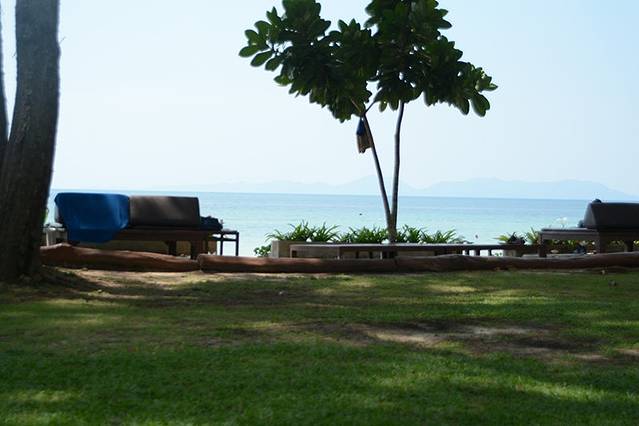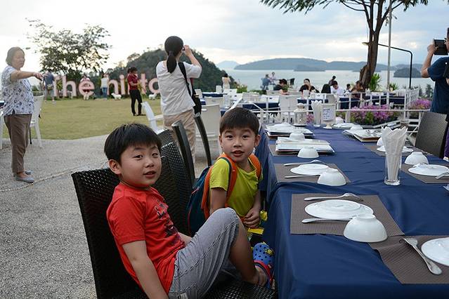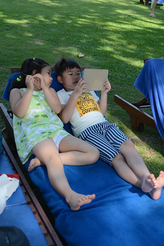 今天是周五,计划着晚上去甲米镇,看看周末夜市,尝尝当地的小吃,一看时间,还早,先让同伴电话之前送他们的司机,订好16:00出发去甲米镇,11人,一共1200b。同伴之一此时已经趴在海边做massage了,据说价格和奥南差不多,280b可以做一次。凡妈和凡爸带着凡去逛酒店了!酒店挺大的,兜兜转转,走了7分钟左右才走到泳池,有2个大池,1个娃娃池,最深1.45米。两个大池之间被一条通往大海的小河阻隔,同时将海滩也分成2块。在退潮时可以趟水而过,涨潮时,只能绕路通过泳池背后的小路走。泳池前面是一大片草坪,草坪上放着沙滩椅,草坪前面就是美丽的安达曼海。