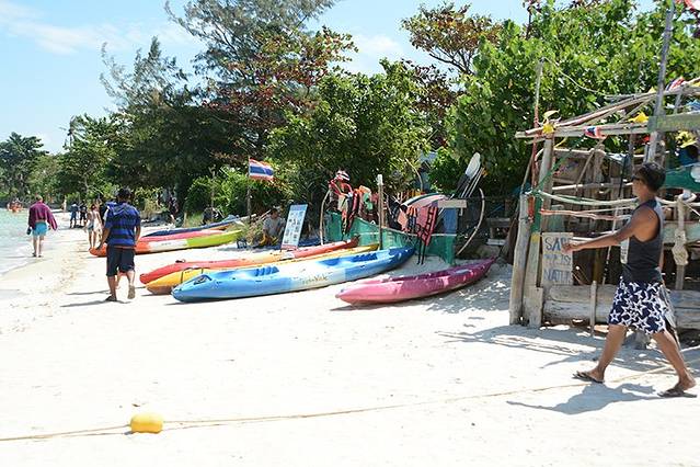 BOAT NOODLE位于奥南的班奥南路上,一般出租车司机都知道的。这家餐厅果然值得推荐,是我们在奥南吃的唯一一顿全部符合我们一家三口胃口的餐厅,而且价廉物美啊!之前在大众点评上看到有人说只营业到20:00,以至于我们之前就这么错过了。结果凡爸一问,人家明明营业到22:00。船面非常好吃,有分猪肉和牛肉的,连凡童鞋也赞不绝口啊!吃完一顿才640b,吃的舒坦,吃的舒心啊!吃完,继续叫了一辆三轮,100b回到LA PLAYA门口的小弄堂,在7-eleven门口的taxi service处叫了一辆车,500b到克隆梦海滩。