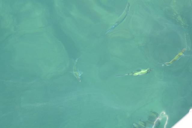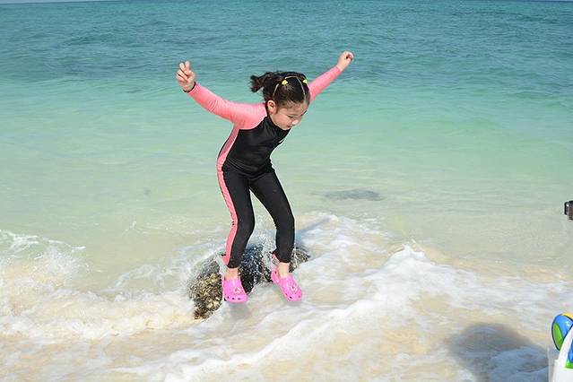 浮潜点在monkey bay的前方海域,和11年前的浮潜点一模一样,海里的鱼也一模一样,还是以那种黄黑相间的鱼居多,但凡妈觉得鱼的数量没以前多了。经过几次的浮潜经历,凡妈算是驾轻就熟了,但是对于初次下海浮潜的大部分伙伴们来说,难免有点紧张,以至于只浮潜了一小会就上船了。凡童鞋虽然也浮潜过几次,但基本还是没学会用呼吸管,所以仅仅带着他的游泳眼镜在海里扑腾了一小会。凡妈呢,也是为了照顾娃,在海里浮潜了一小会就上船了,留着凡爸和另外一对伙伴继续浮潜。在等伙伴们浮潜的同时,凡妈竟然晕船了!船老大看见凡妈不舒服,让凡妈坐到船头,看外面的风景,不要看船舱内。凡妈硬是屏住了,没吐,但也催促着凡爸和伙伴们上船,打算登录monkey bay。
