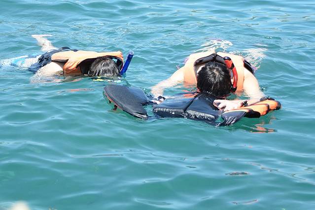 午餐是自助式的,东西不多(话说凡妈总觉得11年前吃的那顿中饭比现在好啊!),但管饱。而且有凡童鞋爱吃的炸猪排,以至于小朋友连吃了4块。一顿中饭,吃了1小时,吃完上船去浮潜了。