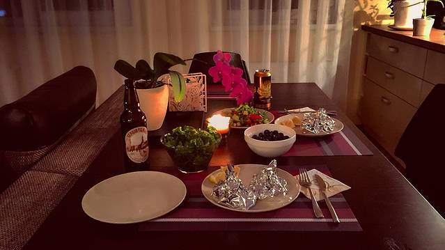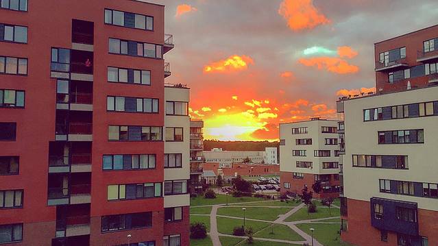 维尔纽斯的雨云退去,一片晚霞。她简单做了个烤鱼给我,因为我说我只想“吃草”,太多天没吃到草了。不吃青菜叶子,真的受不了。