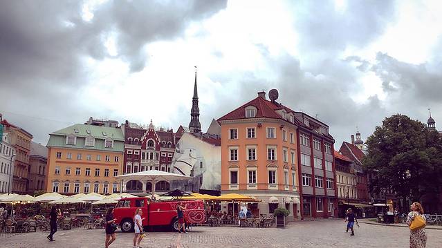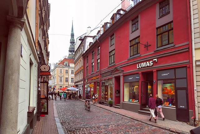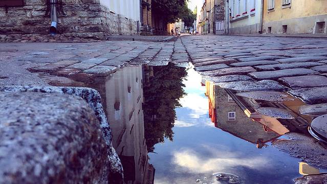 下午3点多的巴士去立陶宛首都维尔纽斯。我走出房子时,乎降暴雨。拖着被飞机上扔坏两个轮子的大行李箱,极其艰难地往汽车站走。不知为什么优步在里加失灵了,暴雨中里加老城的小街道里也打不到车。一手举伞,一手拖着沉重的箱子,鞋肯定全湿透了。我很开心,因为每种经历都是收获,就像是谁喜欢看一成不变的喜剧呢。