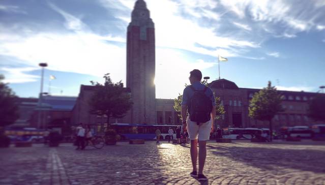 到达芬兰后,由万塔机场乘火车去赫尔辛基市区。由于我们几个的国内信用卡都无芯片,无法使用购票系统购买火车票。经询问后,直接上火车,在购票车厢现金购票。大约几十分钟就抵达赫尔辛基中央火车站了,下火车后步行至酒店。