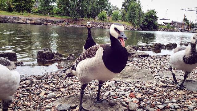 早餐后步行至广场集市的码头,乘船二十分钟左右来到芬兰堡。芬兰堡是赫尔辛基东南方一个较大的岛屿,岛上保留着古老的韵味。红砖房、小木桥,卵石路实在硌得脚疼。掏出食物,海鸥会围过来,一只会引来一群。