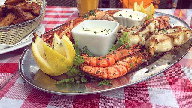 走累了……太累了。好想滚下高地,不想走下去。去吃饭吧,先在一家随便吃了点沙拉。等待另一家下午五点新鲜出炉的熏鱼。