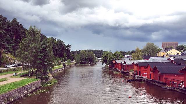波尔沃是个不大的地方,每户人家都有自己的木屋、院子。院子里伸出的大红樱桃、苹果、梨子,滴滴在你眼前。忍住……不摘。有些人家住在河边,房子的阶梯直通河道,可以直接上自家的船,我儿时的梦想有个这样的房子,能从窗户伸出鱼竿。