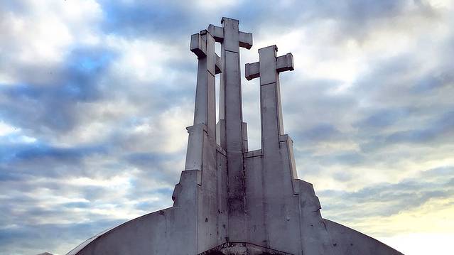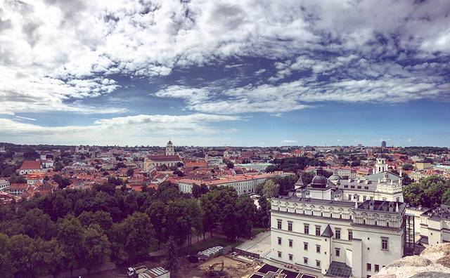 傍晚时分,克里斯来接我了。在中心教堂对面的餐厅一起吃过晚饭,向山上开,想看看傍晚时分的维尔纽斯老城全貌。