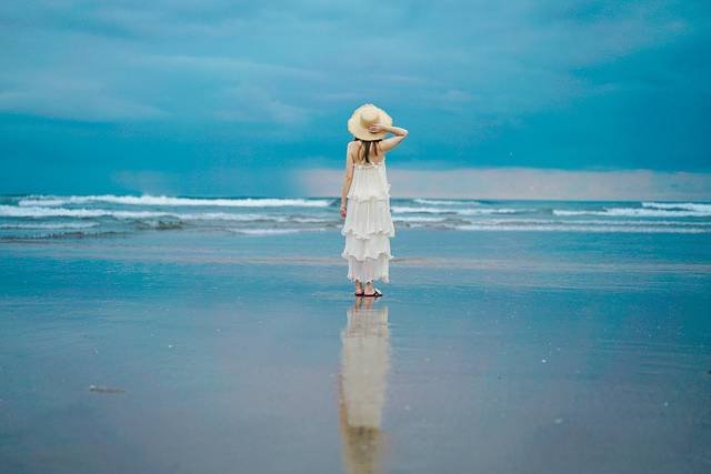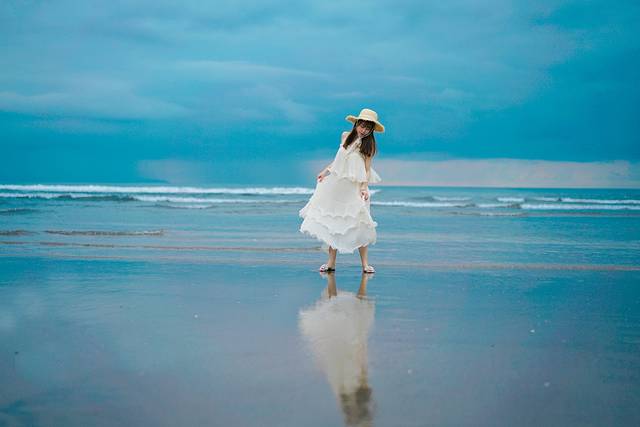浪花也终于能和云朵作伴,一起映在浅浅的沙滩上。