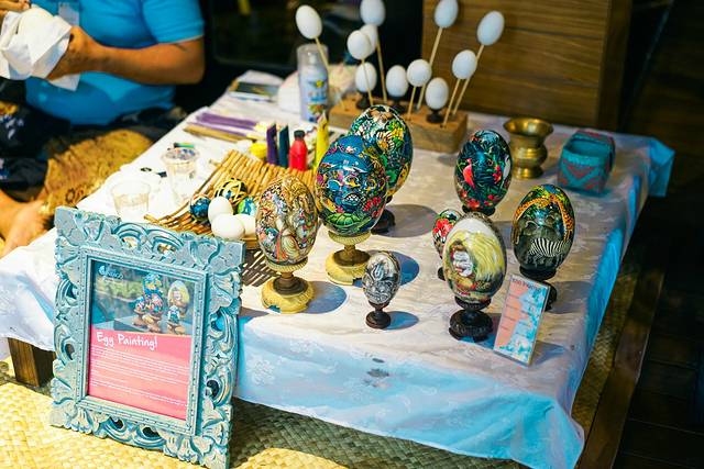 不知道是不是由于鸡蛋花的原因,鸡蛋彩绘也是这里重要的传统手作,而且刻画的还特别细致……