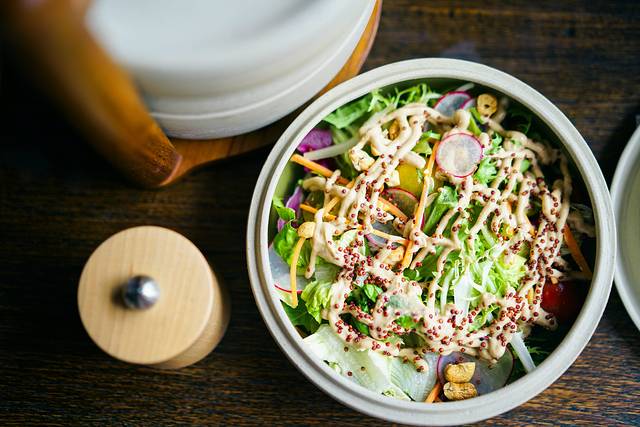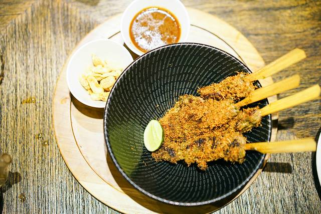 淋着黄生酱的清爽沙拉,烤肉,还有甜点和饮料,从送餐盒到食材,都是原汁原味的印尼风。