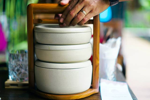 菜单上的菜肴都是以“rantang”的形式送来的。所谓“rantang”,其实就是东南亚的午餐盒,通常也叫“tiffin”,用它送餐是印尼的传统习俗。