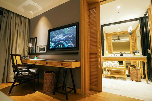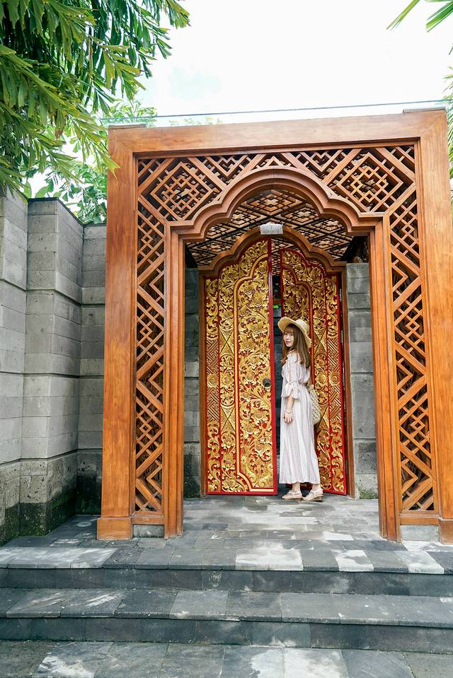 四处逛着遇到一扇古朴的大门,乍一看和巴厘岛神庙的入口造型很像。工作人员一解说才知道,原来这扇门后面是一座独栋别墅。