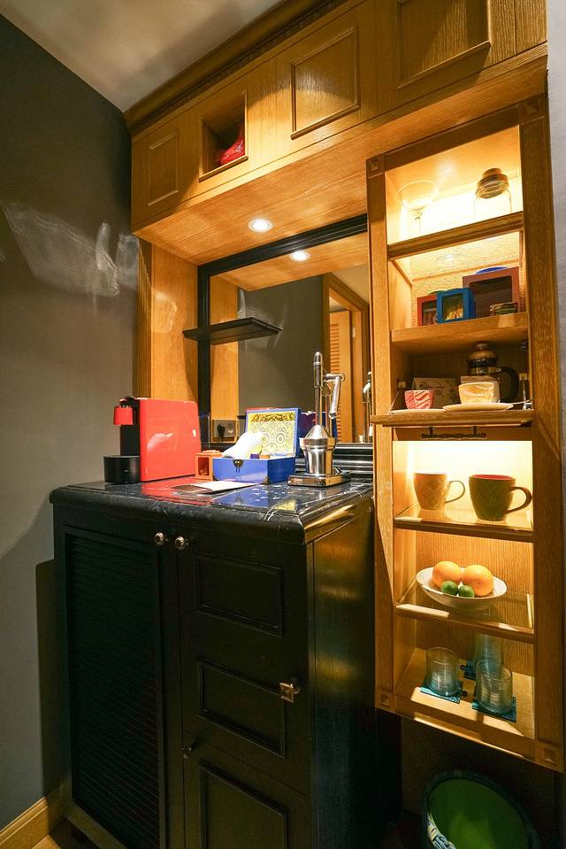 连杯子也不是酒店常用的批量化生产的标准杯,而是很有艺术感的小茶杯,看着就很有生活范儿