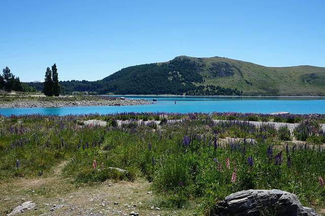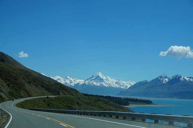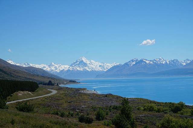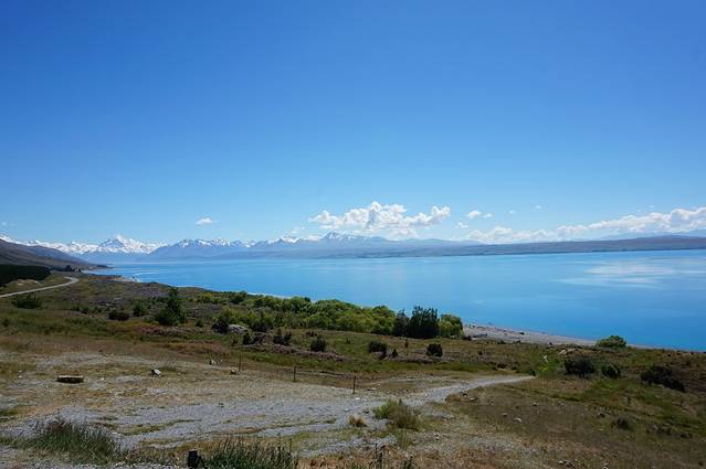 过了特威泽尔就可以看到普卡基湖,真的好蓝啊,奶牛蓝色,闪闪发光的蓝,原谅我们的技术照不出来我眼睛看到的颜色。