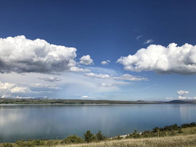 开出去一个小时,才看到蓝天,这个位置照片的左边全是蓝的,右边全是云雾,我们正在分界线的下面,从这一刻起我们要走进晴天了。