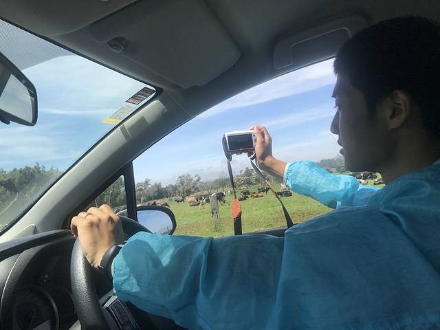 从牧场出来又看到了牛牛,司机先生忍不住拿起相机就照起来,开车照相两不耽误,你才牛呢!