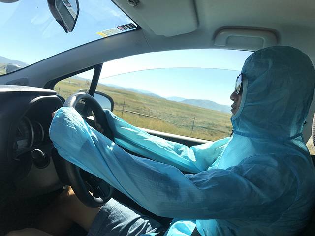我们的司机先生十分注重自己的皮肤,决不让自己晒黑!