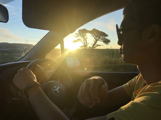 新西兰采用右舵左行,因为前两年有过一次右舵驾驶的经验,所以还是能很快适应右舵左行。即使没有开过右舵的车,大概适应十多分钟也基本可以上手了。路口除了红绿灯还有环岛,记住一定要礼让自己右边的车,如果环岛内有车不要着急进入环岛。如果看到有行人将要过马路,一定要停下来礼让,这里十分重视道路人权。