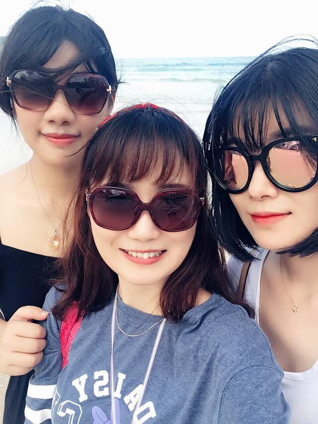 太阳越来越旺,不戴上墨镜都睁不开眼,迎着烈日,顶着一波波狂浪的海风,理一理依旧散乱的头发,嘴角延展出一丝弧线,展现自信的微笑smile~~~~