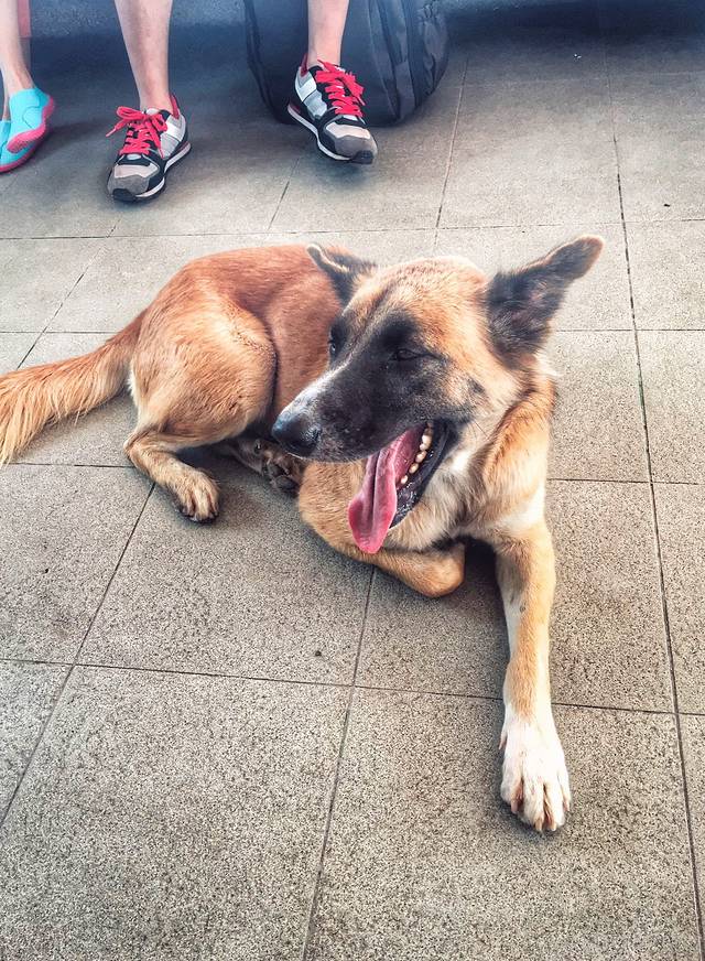 第二天出发去皇帝岛,早早出门来到码头等船,一大早上就烈日当空,连当地的土著狗也吃不消,逃到亭子里避暑。
