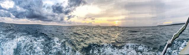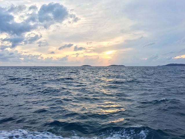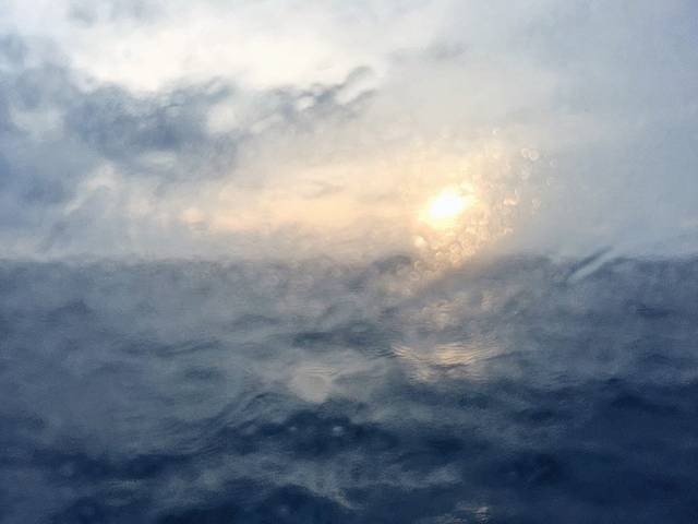 当我来到甲板处时,基本也是船最晃的时候,我单手拉着船上的拉杆,望着因船只晃动而左右倾斜的海景,脑海中浮现出《老人与海》种种对海的描写,然后自身也不做抵抗,随着船的摆动调整自身重心。反而到觉得轻松不少。