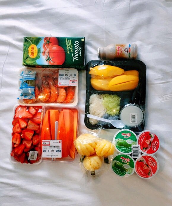 午饭在江西冷的大超市里买了点水果零食,芒果糯米饭,刚吃一两口的时候觉得挺好吃的,之后就有些甜腻,倒是木瓜水分特别足,又甜又软,拆包之后,一扫而光。左上的番茄汁值得一说,因为太奇葩了,口感竟然和国内做饭的番茄沙司一模一样,确定我们买的是juice而不是sause……