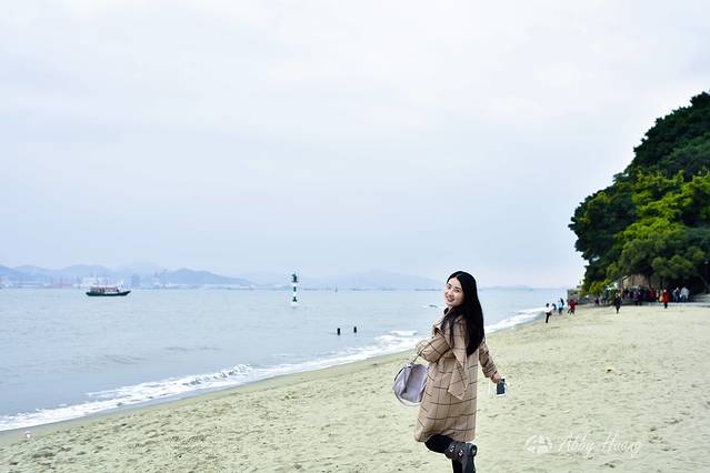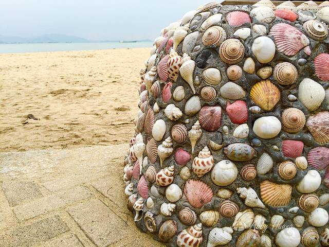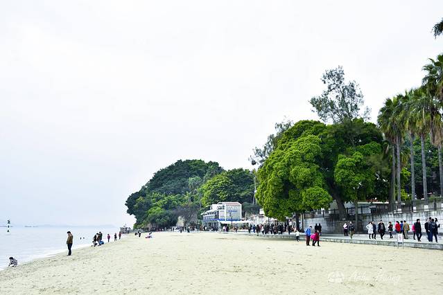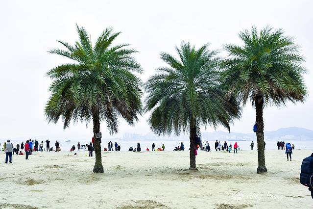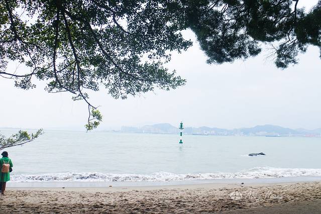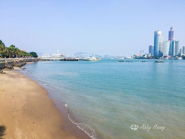 不断的下坡就来到了海边。这片海在菽庄花园旁,游客超多。但是越往西边人就越少了。