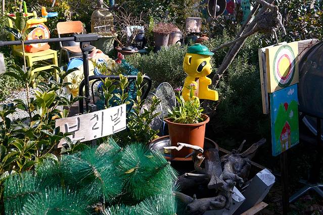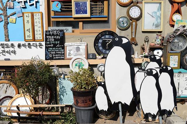 最特别的是这里把扔掉的废品再利用为废料艺术,形成了很好的拍照氛围,在年轻人中很有人气。在真实有人生活的村庄里看着这些作品,自然而然放轻松地漫步于小路间。行走中还能发现旧时的海报,电话机什么的,这也是企鹅村旅游的小乐趣。